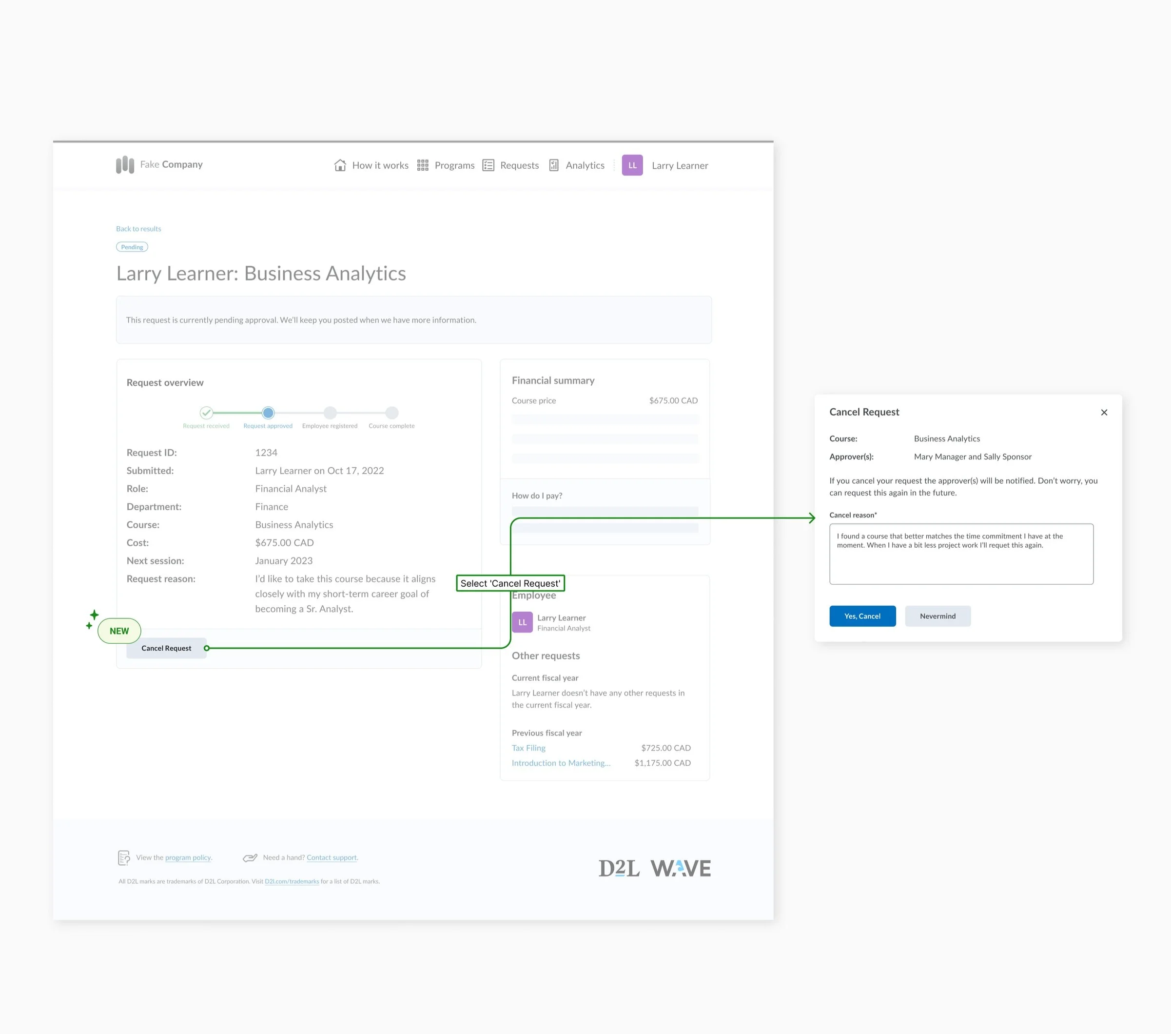 I led the design of a new cancellation workflow for D2L Wave’s course catalog, addressing a major usability pain point and eliminating our most common support ticket.
